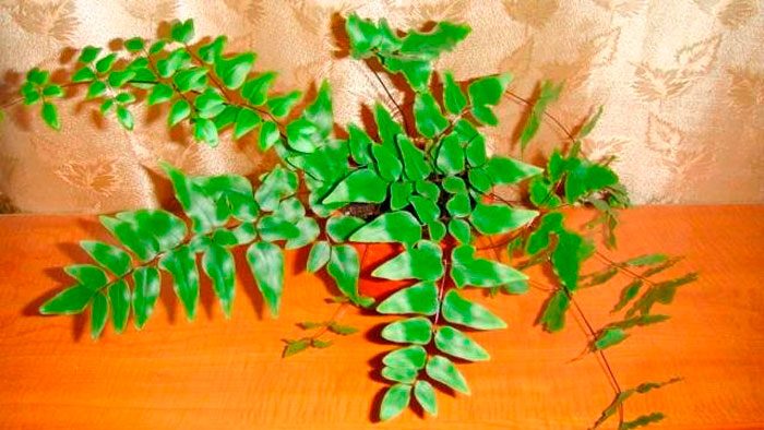 Цей вид відрізняється від інших тим, що його простіше всього вирощувати в кімнатних умовах, тому що він є самим невибагливим. На кромці перистих листових пластин іноді присутні щербини. Лицьова поверхня листя темно-зелена, а виворітна ― світліша.