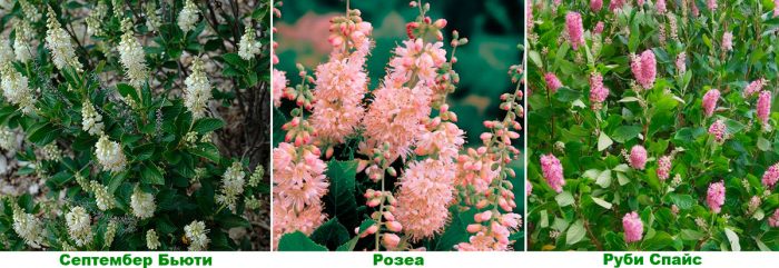 Як вже згадувалося вище, садівниками культивується лише кілька видів клетры.