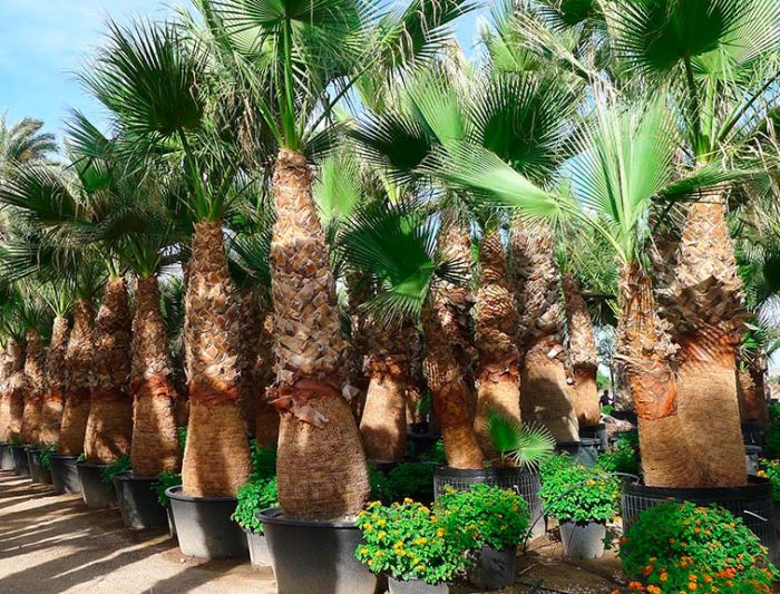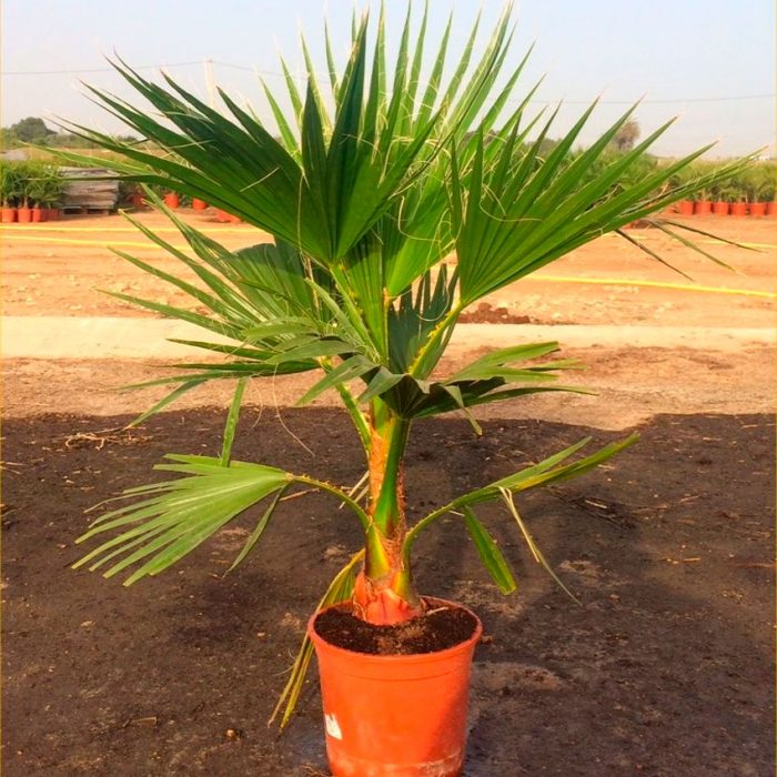 Або вашингтония робуста, або вашингтония сонорская (Washingtonia sonorae). Висота такого деревовидного багаторічної рослини в природі досягає близько 30 метрів. Зелені листові пластини мають віялової формою. Листя розсічена на 2/3 частині довжини пластини. Черешок пофарбована в блідо-червоний відтінок. Квітки білі.
