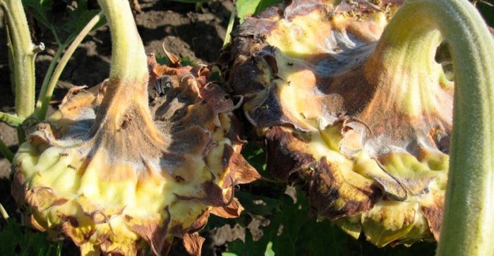 Якщо за соняшником неправильно доглядати, а також дотримуватися правил агротехніки цієї культури, то це може призвести до того, що рослина захворіє.