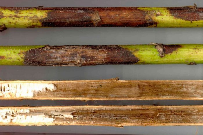 У деяких випадках на листі утворюються пухирчасті викривлення, на поверхні стебла з'являються тріщинки, а сам він стає дуже крихким. Дані симптоми говорять про те, що в ґрунті недостатня кількість бору. У такому разі кущі обприскують по листю засобом, що містить у своєму складі бор.
