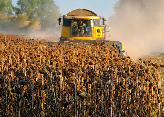 Прибирання соняшнику проводять в період його повної стиглості. У цей час листя і кошики повинні підсохнути і побуреть. Справа в тому, що в даний період спостерігається завершення процесу накопичення олії в насінні, їх ядра тверднуть, шкірка набуває характерний для даного сорту колір. Якщо здавити зрілу насіння з боків зубами, то лушпиння розколеться. Після того як на ділянці рослин з жовтими язичковими квітками буде не більше 15 відсотків, можна починати прибирати урожай. Однак у деяких випадках дозрівання насіння припадає на сезон дощів, і тоді висихання кошиків на корені відбувається більш повільно. А насіння з підвищеною вологістю не підходять для тривалого зберігання. Саме тому в цих випадках, перш ніж почнеться сезон дощів, соняшник в суху погоду обприскують десикантами, які прискорюють процес дозрівання (насіння в кошиках выспевают на 7 днів раніше). Завдяки цій мірі вдається домогтися підвищення врожайності, збільшення якості насіння, а також зменшення їх вологості до 9 відсотків і навіть менше. Однак у цьому випадку прибрати урожай потрібно за 6 діб, в іншому випадку почнеться осипання насіння.