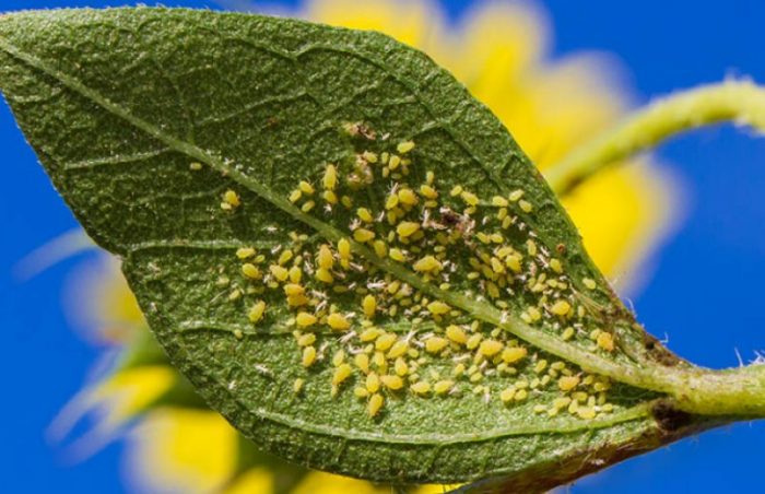 Щоб захистити соняшник від шкідливих комах, посівний матеріал перед висівом необхідно піддати обробці інсектицидним препаратом. У цьому випадку сходи будуть захищені від шкідників протягом 5-7 тижнів. Однак по закінченню цього часу фахівці радять проводити систематичні профілактичні обробки кущів розчином акарицидної або інсектицидного препарату широкого спектру дії, наприклад, Акарином, Агравертином, Залпом або Актеліком. Найбільшу небезпеку представляють клопи і тля, є сисними шкідниками. Справа в тому, що вони не тільки шкодять кущах, висмоктуючи з них сік, але і вважаються головними переносниками небезпечних вірусних захворювань, які на сьогоднішній день є невиліковними.