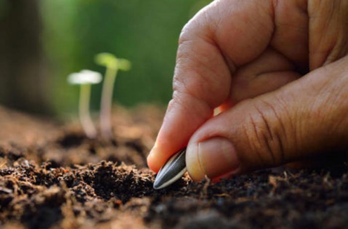 Висів насіння проводять у зволожений ґрунт, заглиблюючи їх у неї на 80 мм, при цьому в одне гніздо треба помістити по 2 або 3 штуки. При посадці високорослих сортів між кущами треба дотримуватися відстань близько 100 сантиметрів, а між середньрослими сортами дистанція повинна бути близько 60 сантиметрів. Чим менше буде дистанція між кущами, тим дрібнішими будуть насіння нового врожаю і навпаки.