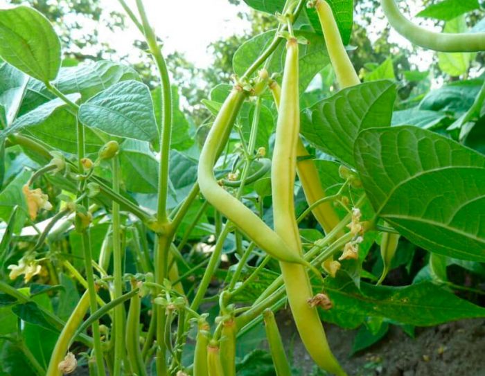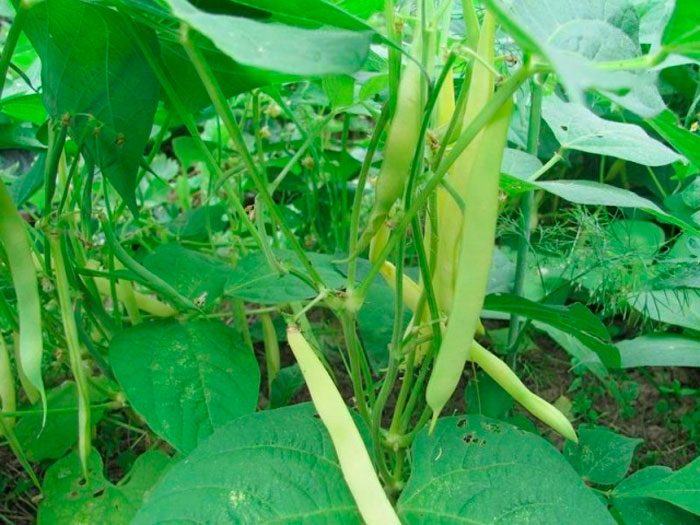 - Мрія господині. Кущовий сорт середнього терміну дозрівання має довгі жовті і досить широкі стручки, всередині них знаходяться насіння білого кольору, в яких міститься велика кількість білка.