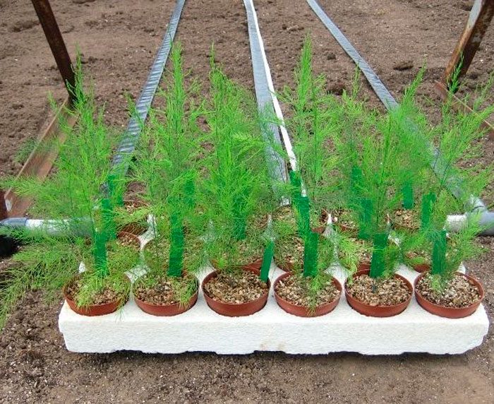 В кімнатних умовах вирощують виключно розсаду такої рослини, а потім її обов'язково потрібно пересадити у відкритий грунт. Вирощувати у домашніх умовах таке їстівне рослина, що володіє сильним і довгим корінням, дуже важко. У кімнатних умовах його можна культивувати лише в якості декоративного рослини, при цьому як овочеву культуру спаржу можна вирощувати тільки у відкритому грунті.