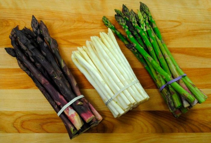 - Біла спаржа, або вибілена, або этиолированная, або бесхлорофилльная. Появи даного різновиду сталося на початку 19 століття. У ті часи саме Москва була центром вигонки і культивування біленої спаржі.