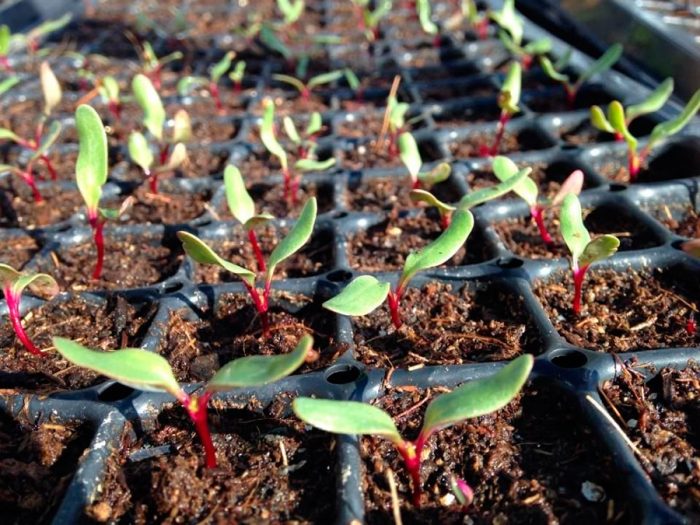 - Посів. Висівають насіння безпосередньо у відкритий грунт під зиму або в весняний час, після того як повітря на вулиці прогріється не менше, ніж до 8-10 градусів. Ранні сорти буряка вирощують через розсаду, при цьому посів проводять в квітні, а висадку рослинок у відкритий ґрунт через 12 тижнів (в першій половині травня).
