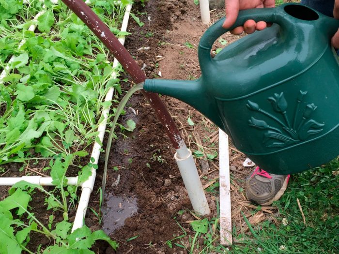 Під час проростання насіння культура потребує своєчасному поливі найбільше, а також у період формування справжніх листових пластин і на стадії активного росту коренеплодів. Після того як коренеплоди досягнуть необхідного обсягу, то кількість води, що використовується для поливу, необхідно скоротити, в іншому випадку вони можуть почати тріскатися.