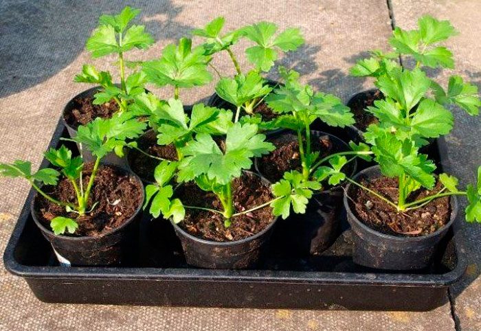 Про те, як посіяти насіння петрушки у відкритий грунт, докладніше описано вище. Але в деяких випадках така рослина вирощують розсадним способом. Перш ніж приступитися до посіву насіння потрібно замочити у воді, де вони повинні пробути 24 год, це дозволить очистити їх від ефірних масел, які сприяють уповільненню проростання. Потім посівний матеріал необхідно помістити в зволожену тканину. Після того як з'являться білі паростки, насіння висівають, попередньо підсушивши їх до сипучості. Пікіровку розсади слід провести після того, як у них почнуть формуватися дві справжні листові пластини, для цього використовують торф'яні горщики. Після того, як з моменту висіву насіння пройде 8 тижнів, розсаду петрушки кореневої необхідно висадити у відкритий грунт. Її висаджують разом з горщиками, і в залежності від сорту між кущами дотримують дистанцію в 7-15 сантиметрів. При висадки сіянців листової петрушки між ними слід дотримуватися дистанцію не менше 20 сантиметрів. Відстань між рядами повинна бути близько 0,5 м. При цьому підготовкою ділянки необхідно зайнятися завчасно.