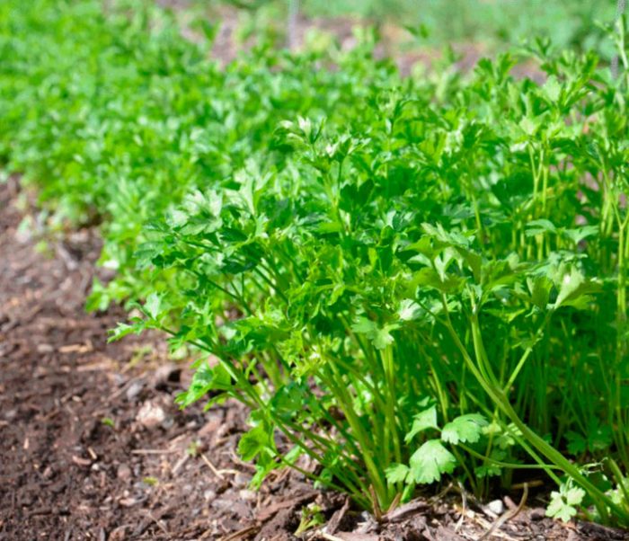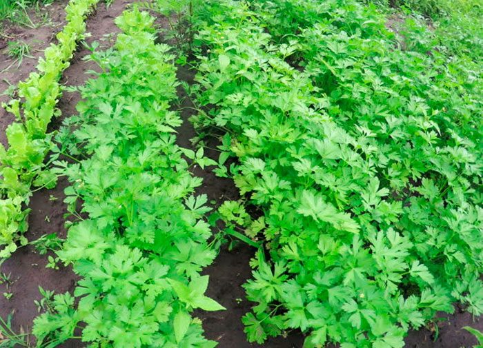 Виростити таку культуру у відкритому ґрунті досить просто. Для цього кущики треба вчасно прорежать, прополювати, підгодовувати, поливати, а також спушувати поверхню грядки. У весняний час поки петрушка ще дуже слабка, вона потребує особливого захисту від бур'янів, тому що вони здатні заглушити будь-культурну рослину. У зв'язку з цим петрушку потрібно буде систематично полоти, при цьому бур'яни слід видаляти з рядів, так і з міжрядь. Проводити дану процедуру рекомендується через 24 год після того, як пройде дощ або грядка буде полита, при цьому разом з видаленням бур'янів треба ще розпушити поверхню грунту. Розпушування покращує аерацію кореневої системи кущів.