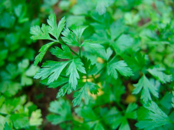 - Глорія. Цей ранній сорт відрізняється своєю врожайністю, він призначений для вирощування у відкритому грунті, а також в теплиці. Розетка низька, а листові пластини великі і довгі. Таку петрушку використовують в їжу в свіжому вигляді, а також для приготування заготовок на зиму.
