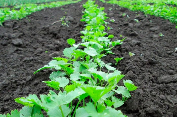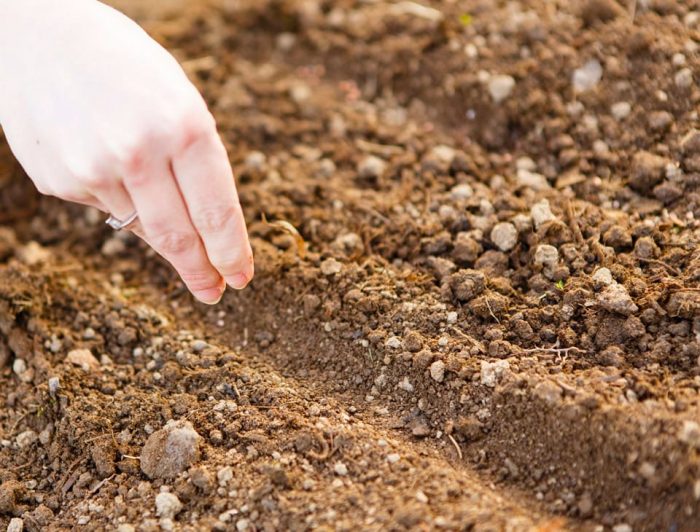 На підготовленому ділянці слід зробити борозенки, в глибину сягають 10-15 мм, при цьому ширина між ними повинна бути близько 0,5 м. Борозенки потрібно рясно полити теплою водою, а після того, як вона повністю вбереться, проводять висів насіння. Борозенки треба засипати грунтом, після чого його утрамбовують. Як правило, перші сіянці з'являються через 15-20 днів. В осінній час для посіву використовують сухі насіння, потім поверхню грядки засипають шаром мульчі (перегноєм або торфом).