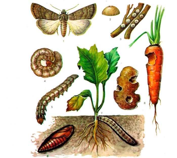 Совки влаштовують на кущиках яйцекладки, з яких через деякий час з'являються гусениці. Вони згризають частини куща, розташовані над поверхнею землі, а також підгризають корінці.