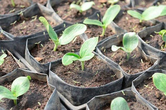 Посів насіння на розсаду для висадки у теплицю проводиться в останні дні квітня, при цьому потрібно взяти окремі стаканчики, які в діаметрі досягають 10 сантиметрів. Їх заповнюють субстратом, до складу якого входить дернова земля або торф, перегній і тирсу або пісок у співвідношенні 5:4:1. Перш ніж засипати грунтосуміш в ємності, її потрібно підготувати. Для цього її з'єднають з 5 грамами сірчистого калію, 6 грамами подвійного суперфосфату, 7 грамів аміачної селітри і 6 грамами крейди з розрахунку на 10 літрів субстрату, все добре змішують і поливають. Насіння висівають по 2 або 3 штуки на 1 стаканчик, їх заглиблюють в субстрат приблизно на 30 мм, потім ємності зверху вкривають плівкою або склом і прибирають в таке місце, де в денний час температура повітря від 22 до 25 градусів, а вночі ― від 17 до 18 градусів. Після появи перших сіянців укриття потрібно прибрати, а за допомогою провітрювань температуру повітря слід знизити: у денний час-від 18 до 20 градусів, а вночі ― від 15 до 17 градусів. Через 7 днів необхідно повернутися до змін температурного режиму.