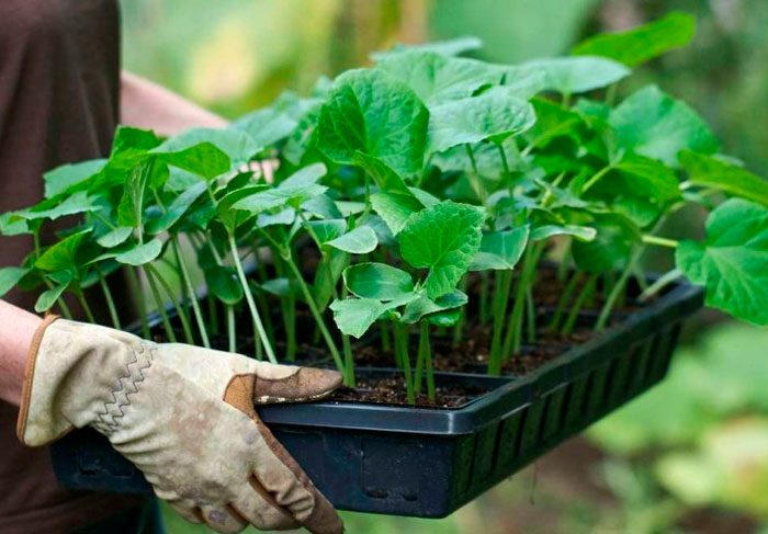 Під час росту розсади даної культури в теплиці, її потрібно буде рідко, але рясно поливати. А після поливу треба не забувати обов'язково провітрювати теплицю. Після того як вік сіянців досягне 1,5 тижнів, їх слід удобрити розчином коров'яку (1:10), в який всипають нітрофоску (на 1 відро розчину 50 грам речовини). Якщо здорова розсада, то безпосередньо перед висадкою у відкритий ґрунт вона повинна мати низенький потужний стебло з короткими міжвузлями, а також 2 або 3 добре розвинені справжні листові пластини. З теплиці сіянці у відкритий грунт висаджують в перші дні червня.