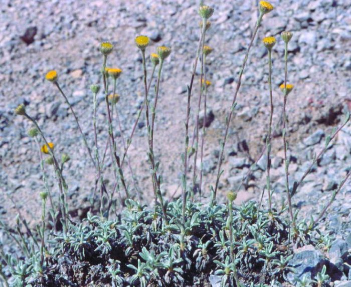 Даний вид є найбільш сильнорослою, висота куща може доходити до 100 сантиметрів. У такого виду є карликові різновиди Притти Керол і Уестон, які у висоту досягають всього 16 сантиметрів. Суцвіття мають кулясту форму і жовтого забарвлення. Вони ефектно виглядають на зеленому тлі розсічених листових пластин. Так як даний вид є теплолюбною, його культивують найчастіше в альпійській теплиці.