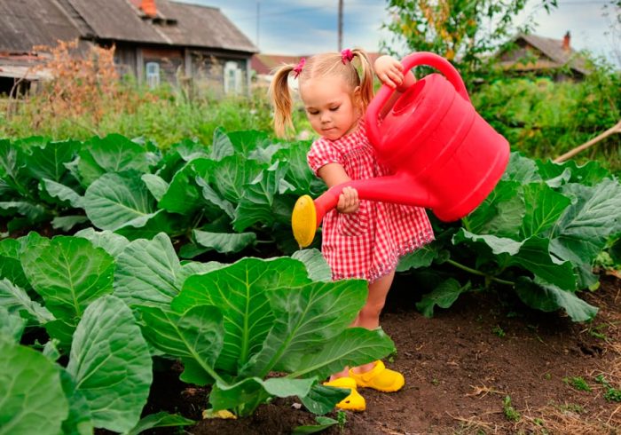 При культивуванні капусти у відкритому ґрунті потрібно особливу увагу приділити режиму поливу. Справа в тому, що ця культура належить до вологолюбних. Поливають кущі, ввечері, у спекотну погоду частота рясних поливів повинна бути 1 раз на 2 або 3 доби, а в дощові дні вистачить одного поливу в 5 або 6 днів. Після того як рослини будуть политі, поверхню грядки треба добре розпушити, одночасно окучив кущики. Щоб скоротити кількість поливів, досвідчені городники рекомендують, засипати поверхню ділянки пятисантиметровым шаром торфу, який також стане джерелом поживних речовин для капусти.