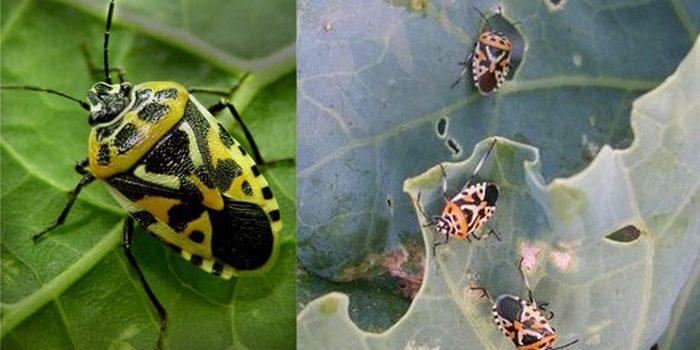 Ці строкаті жуки, в довжину досягають близько 10 мм, які зимують у грунті, представляють для капусти дуже велику небезпеку. В останні дні квітня вони починають поїдати розсаду, потім у перші літні тижні самки влаштовують яйцекладки, личинки з'являються через півмісяця, а через 4 тижні вони стають дорослими комахами. Клопи проколюють поверхню листових пластин і висмоктують сік з рослини. Тканина листа, де знаходиться прокол, відмирає. Якщо проколів буде дуже багато, то листові пластини в'януть, засихають і відмирають. У посушливий період цей шкідник представляє для капусти найбільшу небезпеку. В цілях профілактики з ділянки треба висмикувати всю бур'янисту траву, яка належить до родини Хрестоцвіті, наприклад, сурепицу, свербигу, талабан польовий, грицики, бурачок і жерушник. Коли урожай буде прибраний, з ділянки слід видалити всю бур'янисту траву, яку треба зібрати і знищити. Щоб позбутися від цього шкідника, розсаду слід обприскати препаратом Фосбецид або Актеллик, зробити це потрібно до початку формування качана.