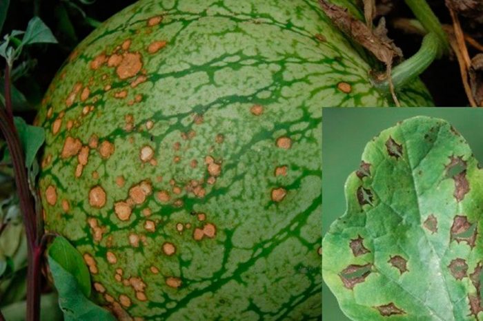 Найбільш часто кавуни вражає біла, сіра, чорна і коренева гнилі, борошниста роса – справжня і несправжня, антракноз, незграбна і оливкова плямистості та мозаїка. Щоб значно підвищити стійкість даної культури до хвороб і шкідників, необхідно правильно готувати насіння до посіву і грунт до садіння, а також треба дотримуватися всіх правил агротехніки цієї культури. У цьому випадку кущики не будуть хворіти взагалі, а також на них не оселиться жоден шкідник. Але все-таки небезпека ураження арбузов хворобами і шкідниками існує, і тому потрібно вміти своєчасно виявляти хворі рослини і лікувати їх.