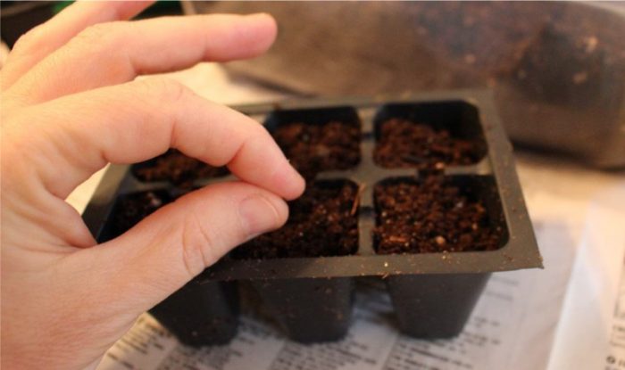 Висів насіння проводять у вологий субстрат, при цьому заглиблюють їх всього на 10 мм. Ширина міжрядь при посіві в загальний ящик повинна бути близько 50 сантиметрів. Посіви потрібно накрити зверху поліетиленом або склом, після цього їх прибирають в добре освітлене і тепле (від 20 до 25 градусів) місце. Перші сіянці можна буде побачити через 7-15 днів після посіву.