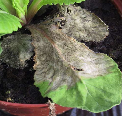 На початковому етапі розвитку борошнистої роси на обох поверхнях листових пластин утворюються поодинокі цятки борошнистого нальоту. З часом вони стають все більше, поки не охоплять повністю всю пластину, в результаті лист стає жовтим і відмирає. Ураженню піддаються не тільки листя, але і пагони, а також зародки. Якщо кущики вражені дуже сильно, то їх потрібно обприскати розчином фунгіцидної препарату, наприклад: Квадриса, Світча, Топазу, Браво, Ридоміла, Швидка або Хоруса.