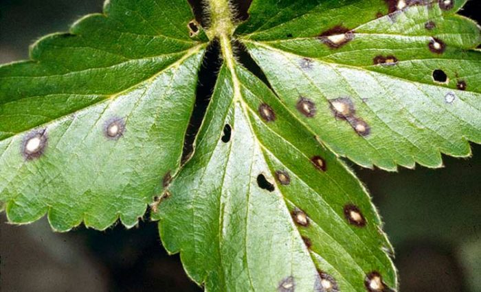 Якщо на листових пластинках з'явилися великі практично чорного забарвлення цятки з фіолетовим облямівкою, то це означає, що рослина заражене филлостикозом листя. У деяких випадках знаходиться в центрі плямочки уражена тканина розфарбовується і випадає, а на її місці з'являється дірочка. Як правило, уражається даною хворобою тільки старе листя. Лікувати заражене рослину потрібно так само, як і у випадку з плямистістю.