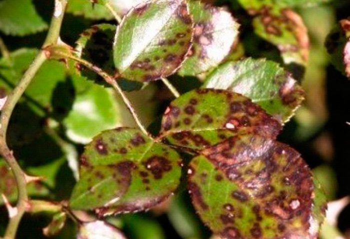 У другій половині літнього періоду на черешках і листю можуть утворитися плями буро-чорного забарвлення ― це симптоми зараження чорною плямистістю. Якщо шипшина вражений дуже сильно, то його листя стає темною, засихає і облітає. Для того щоб не допустити подальшого розвитку плямистості, треба видалити всі заражені листові пластини і стебла, їх потрібно знищити. Під чагарником грунт перекопують з оборотом пласта. В осінній та весняний час рослина слід обприскувати інсектицидними препаратами.