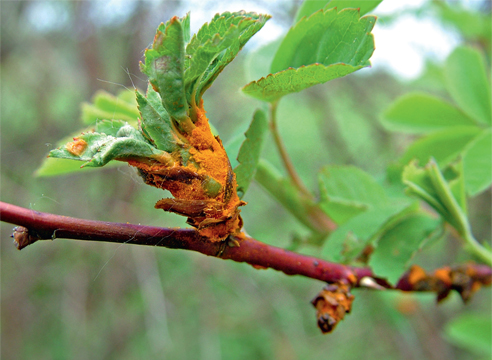 Якщо кущ вражений іржею, то на виворітній поверхні його листя можна виявити велику кількість запилених спір і маленькі подушечки жовто-оранжевого кольору. У міру розвитку хвороби спостерігається деформація стебел, квіток і пагонів, а також всихання листових пластин. Виріжте знищіть уражені частини рослини, грунт під кущами піддають перекопуванні. Перш ніж вкрити шипшина на зимівлю, його потрібно обробити препаратом, що містить мідь, наприклад, мідним купоросом.