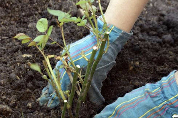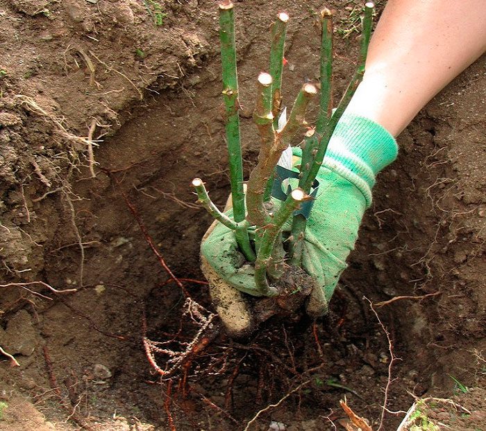 Перед висаджуванням корені рослинки слід занурити в глиняну бовтанку, після цього їх розміщують в підготовленій ямі таким чином, щоб коренева шийка рослинки була заглиблена в ґрунт на 5-8 сантиметрів. Після цього ямку заповнюють поживним ґрунтом, сполученим з добривом. Коли кущик буде посаджений, поверхня ґрунту потрібно трохи ущільнити, а потім його поливають, використовуючи для цього від 8 до 10 літрів води. Коли рідина повністю вбереться в грунт, його поверхню необхідно засипати шаром мульчі (тирсою, перегноєм або торфокрошкой).