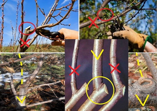 Досвідчені садівники рекомендують санітарну та формуючу обрізку провести у весняний час, а точніше, в середині березня або перші дні квітня. Необхідно провести укорочення скелетних гілок, а також підрізання провідника до 300-350 див. Ті дерева, що дають рясний урожай, необхідно прорідити, вирізавши всі конкуруючі гілки, а також сприяють загущення крони. Також слід вирізати всі пошкоджені морозом і травмовані гілки і стебла. Слід пам'ятати, що гілки потрібно формувати ярусами, при цьому до складу ярусу розташованого в самому низу повинно входити від 7 до 9 скелетних гілок.