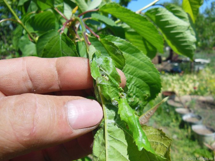 Найбільшу небезпеку для черешні і вишні являє яблонно-подорожникова і чорна вишнева попелиця. Личинки таких шкідників висмоктують рослинний сік з листових пластин, у результаті чого ріст центральної жилки припиняється, а також спостерігається згортання, засихання та почорніння самого листа. У уражених попелиць молодих дерев спостерігається деформація і зменшення приросту, у тих рослин, які вже почали плодоносити, не відбувається закладання квіткових бруньок, а також помітно знижується якість ягід. На поверхні листя з'являється шар паді (солодкі і липкі екскременти шкідників), на якій воліє селитися сажістий грибок. На початку весняного періоду за сплячим нирках дерево потрібно обприскати Конфидором, через півмісяця проводять повторну обробку. З таким шкідником можна боротися нешкідливими рослинними засобами, які відрізняються інсектицидними властивостями. Наприклад, можна використовувати наступний розчин: на 1 відро води береться 200 грам тютюнового пилу і невелика кількість рідкого мила.