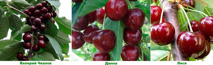 - Данна. Частково самоплідний сорт, відрізняється врожайністю. Починає плодоносити лише на п'ятий або шостий рік. Одномірні округлі ягоди темно-червоного кольору мають трохи конічну форму і важать в середньому 4,5 грама. Солодка темно-червона м'якоть дуже соковита і ніжна.