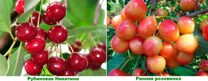 - Рубінове Нікітіна. Цей частково самоплідний сорт відрізняється стійкістю до захворювань і шкідників, і врожайністю. Починає плодоносити на п'ятий або шостий рік. Ягоди важать близько 3,8 грам і мають темно-червоне забарвлення. Солодка соковита м'якоть досить ніжна.