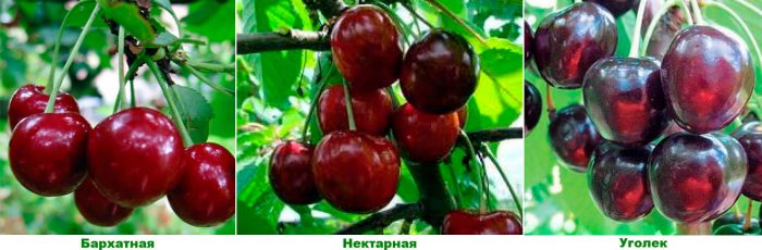 - Оксамитова. Цей десертний сорт володіє стійкістю до грибкових захворювань. Плодоношення починається на п'ять років. Глянцеві великі ягоди мають темно-червоне забарвлення і відмінний смак.