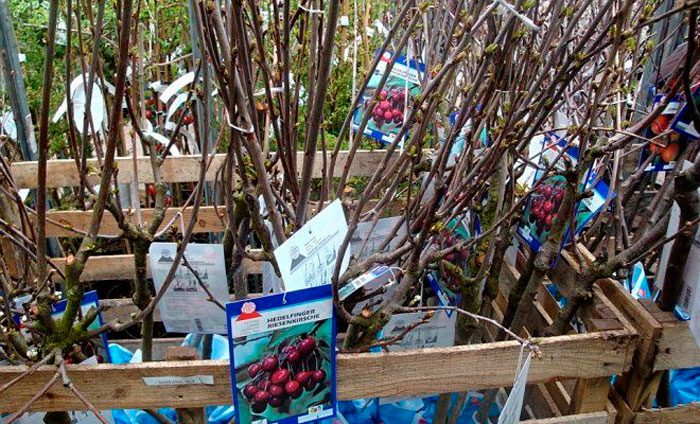 Крім підготовки ділянки і ями особливу увагу слід приділити вибору саджанця. Треба вибирати одне - або дворічні саджанці, при цьому потрібно провести ретельний огляд його стовбура. Пам'ятайте, що на стовбурі обов'язково повинен бути видно слід від щеплення. Справа в тому, що прищеплена черешня в більшості випадків є сортовий, а сортові рослини мають ряд переваг, наприклад, вони починають плодоносити раніше, а їх плоди значно смачніші. Також постарайтеся вибрати саджанець з безліччю гілок, в цьому разі процес формування правильної крони значно спроститься. Також у рослинки обов'язково повинен бути потужний провідник. Якщо ж провідник буде слабким, то після того, як черешня рушить в зростання, у нього з'являться конкуренти з потужних гілок. Якщо рослина має одразу кілька провідників, то при багатому врожаї є ризик того, що черешня розламається між ними, з-за чого вона загине. Пам'ятайте, що у саджанця повинен бути лише 1 потужний і прямий провідник. Також огляньте кореневу систему, вона не повинна бути травмованої або пересохлої. У відкритий грунт можна висаджувати саджанці лише з потужної, добре розвиненою системою коренів. При перевезенні систему коренів рослинки потрібно обмотати мокрою тканиною, а потім поліетиленом або клейонкою. Якщо на саджанці є листя, то її треба видалити, так як вона буде сприяти зневоднення рослини. Перед самою висадкою потрібно вирізати усі сумнівні коріння, а ще ті, що не можуть вміститися в ямі. Потім кореневу систему рослини треба на декілька годин помістити в воду, щоб вона змогла набрякнути. Підсохлі коріння можна залишити у воді на 10 ч.