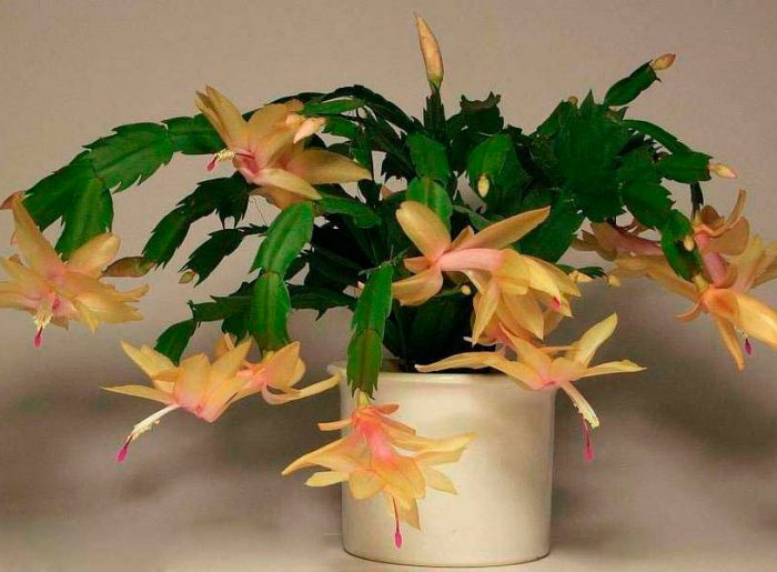 Даний сорт декабриста дуже цікавий. Справа в тому, що він має жовті суцвіття. Причому відтінок їх ніжний і приємний, прямо таки сонячний. Варто відзначити, що в природі декабристи не квітнуть жовтим. Але селекціонери постаралися і вивели такий вигляд. Працювати їм довелося довго, завдання перед ними стояло не з легких. Все ж у них вийшло створити теплий сонячний декабрист.