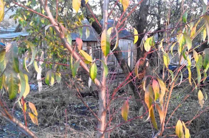 В останні дні жовтня або перші листопада, коли все листя опаде, слід провести прибирання ділянки, на якому росте нектарин. Для цього треба згребти все облетевшую листя та інші рослинні залишки і знищити справа в тому, що в них могли влаштуватися на зимівлю різні шкідники. Потім проводять вологозарядковий полив дерева. Коли рослина буде полито, його слід обприскати мідним купоросом від грибних хвороб, а також Нітрафеном ― для знищення шкідників, які влаштувалися на зимівлю у верхньому шарі ґрунту під рослиною і в його корі.