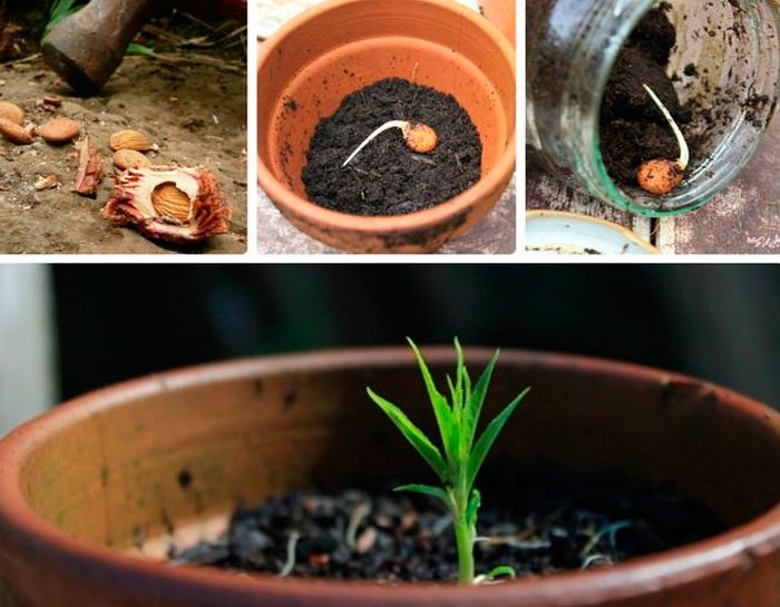 Насіння рекомендується брати від рослин, адаптованих до умов вашого регіону. Для цього в період плодоношення обійдіть сусідні садові ділянки і візьміть плоди від тих дерев, які сподобалися вам найбільше. Плоди треба на 3 дні помістити у воду, яку замінюють двічі на добу, потім їх забирають в затінене місце для підсушування. Після цього з плодів акуратно витягують кісточки. Для висіву насіння вибирають добре освітлену ділянку, який знаходиться далеко від будівель та дерев. Спочатку необхідно зробити траншею, яку засипають поживним грунтом. Кісточки в неї заглиблюють на 50-60 мм, при цьому відстань між ними повинна бути дорівнює 20-25 сантиметрів. Потім насіння потрібно закрити і дуже добре полити. Після того як рідина вбереться в грунт, поверхню грядки треба засипати шаром мульчі (листям, травою або тирсою).