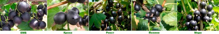 - ЕМБ. Даний британський сорт володіє стійкістю до шкідників і хвороб. Він високорослий, так, його висота може доходити до 180 сантиметрів. Велика частина характеристик сорту схожа з аґрусом. Цвіте такий чагарник приблизно півмісяця. Плодоносить даний сорт досить рясно. У середньому плоди важать близько 5 грам, вони володіють прекрасними смаковими якостями. Дозрівання ягід триває приблизно 8 тижнів.