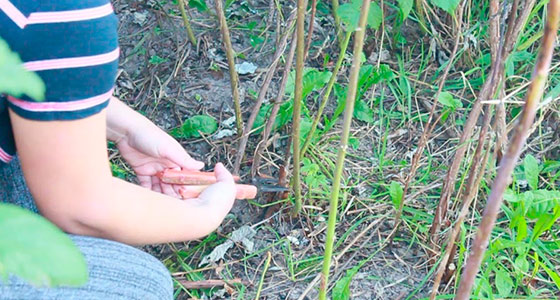 Для нарізки живців слід вибрати зростаючі вгору не пониклі стебла, розташовані з південно-західній або південної сторони дерева або чагарника, яким виповнилося 3-5 років. Живці слід окропити водою і обрізати у них верхню частину, на якій розташовані недорозвинені листові пластини, тому що вона вкорінюється досить погано. У довжину живці повинні досягати від 10 до 12 сантиметрів, при цьому на кожному з них повинні перебувати від 6 до 8 листових пластин. У готових живців слід зрізати всі листочки, розташовані знизу. Верхній зріз робиться безпосередньо над ниркою, і він повинен бути прямим, нижній зріз роблять на 10 мм нижче вузла. Живці слід посадити в грунт, поглибивши їх при цьому на 20-30 мм, дистанція між ними повинна бути від 5 до 8 сантиметрів, навколо них варто утрамбувати грунт. На ящик зверху слід надіти каркас з дроту, при цьому він повинен підноситися над ємністю на 15-20 сантиметрів. На цей каркас треба натягнути плівку з поліетилену. Саморобний парничок слід прибрати в добре освітлене місце, але при цьому на нього не повинні потрапляти прямі промені сонця.