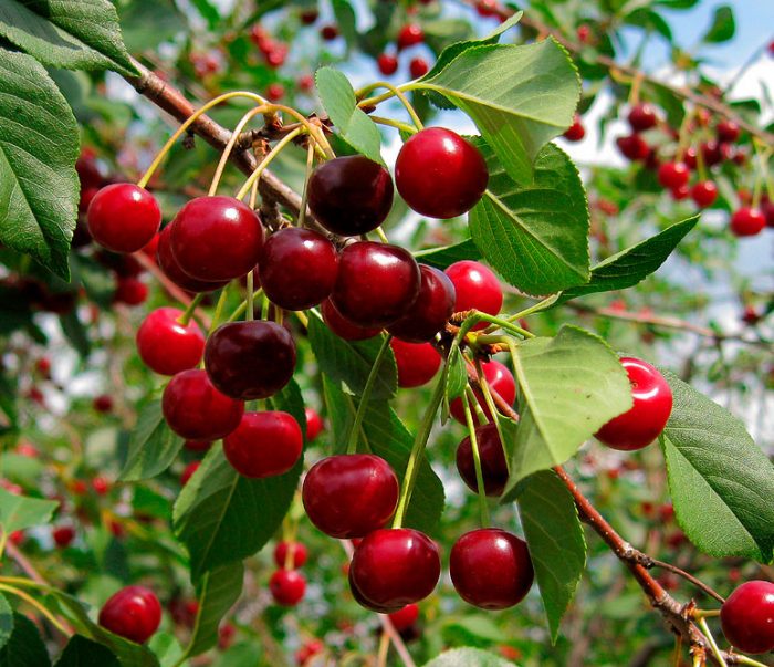 - Родюча Мічуріна. Середньорослий сорт, відрізняється врожайністю і морозостійкістю, схильний до грибкових захворювань. Крона розлога. Середньої величини глянцеві насичено-червоні ягоди мають округлу форму.