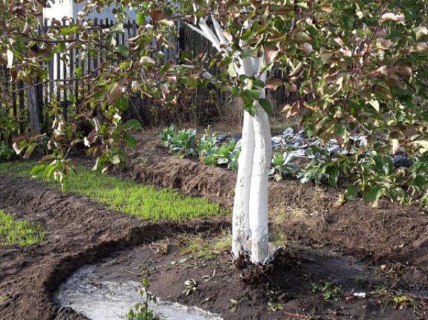 Після того, як наприкінці вересня буде прибраний весь урожай, а листя почне змінювати свій колір на жовтий, в грунт під перекопування потрібно внести мінеральні, а також органічні добрива. Перш ніж листопад стане масовим, рослині знадобиться вологозарядковий полив, при цьому грунт повинен промокнути на 0,4–0,6 м. В тому випадку, якщо ви збираєтеся висадити саджанці, то врахуйте, що дану процедуру рекомендується проводити в першій декаді жовтня, в цей час верхній шар грунту ще не має промерзнути.