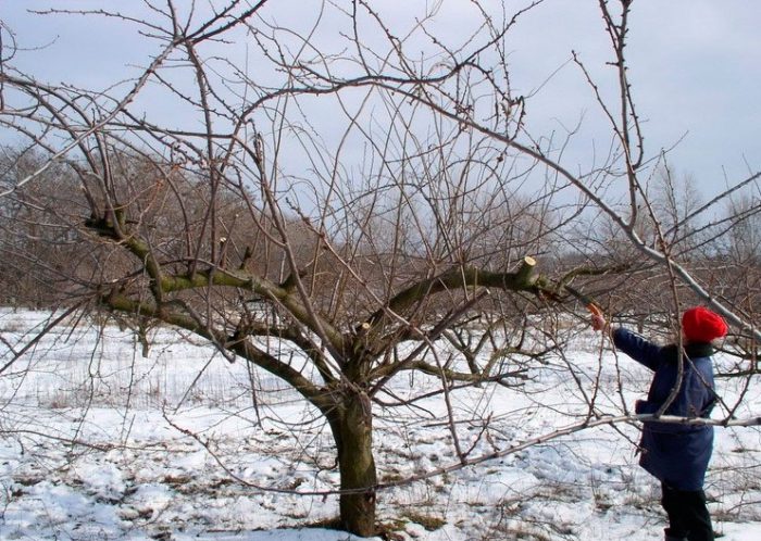В останні дні березня або перші ― квітня проводять формуючу обрізку молодим екземплярів, при цьому дорослі дерева потребують проріджуючому та санітарної обрізки. Для цього потрібно зрізати всі травмовані і висохлі гілки і стебла, а загущають крону та однорічні гілки слід вирізати на кільце. Коли дерево починає плодоносити, спостерігається значне уповільнення зростання його стебел, при цьому процедура обрізання стане більш легкою.