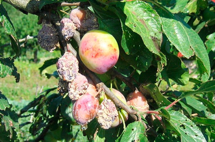 На плодах з'являються подушечки сірого забарвлення, в яких знаходяться спори грибів тоді, коли рослина уражена сірою гниллю або моніліозом. Гілки і стебла стають бурими і починають в'янути наче обпалені, а ще на поверхні кори з'являються нарости. Від уражених плодів хвороба передається здоровим, тому їх потрібно своєчасно обривати і спалювати. Також необхідно вирізати всі частини дерева, уражені моніліозом. У весняний час до того, як розкриються бруньки, слід обприскати дерево бордоською сумішшю (3%). Перед тим як почнеться період цвітіння і відразу після його закінчення, аличу обробляють препаратом, який по своєму впливу на рослину схожий з бордоською рідиною.