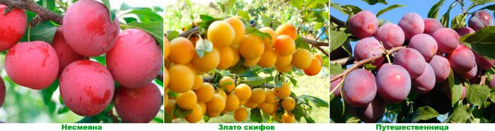 - Мандрівниця. Цей ранній сорт самобесплоден, він відрізняється стійкістю до морозів. Жовті з фіолетово-червоним нальотом невеликі плоди важать близько 27 грам. Солодка м'якоть має помаранчевий колір, ніжний запах і тонковолокнистих структуру. Такі рослини дають стабільний урожай, але у їх плодів кісточки досить складно відокремити від м'якоті.