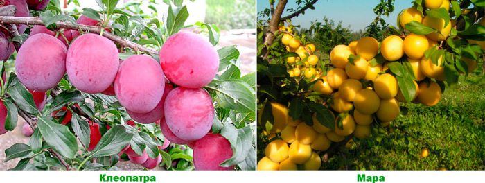 - Клеопатра. Цей пізній самобесплодный сорт відрізняється зимостійкістю. Середньої висоти рослини мають крону ширококонічної форми. Темні великі фіолетові плоди важать близько 37 грам, на їх поверхні є наліт сизого кольору. Щільна м'якоть червоного кольору дуже смачна, вона має хрящеватую структуру. Відділення кісточки відбувається лише на ½ частину.