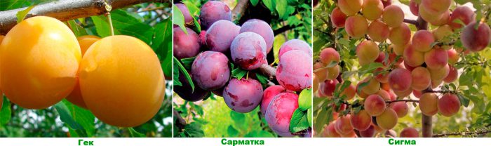 - Сарматка. Самобесплодный сорт, що володіє стійкістю до морозів і захворювань. Забарвлення середньої величини яйцевидних плодів червоно-фіолетовий. М'якоть жовтого кольору і середньої щільності солодко-кисла. Кісточку від м'якоті відокремити складно.