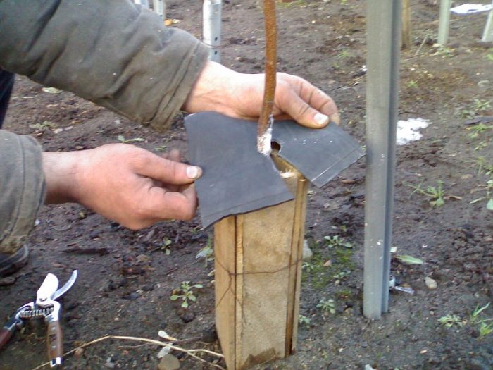 Для підщепи вибирають дворічні саджанці, стовбур у яких має товщину не менше 0,8 див. Прищеплювати найкраще в квітні небудь травня, тому що саме в цей час сокодвіженія в рослину максимально сильне. Найбільш легкий і швидкий метод щеплення ― це копуліровка, але до нього можна вдатися лише тоді, коли товщина підщепи і прищепи однакова. Обрізку підщепи виробляють на висоті 7 сантиметрів від поверхні грунту. Потім на підщепі та підщепі потрібно зробити косі зрізи, які повинні бути однаковими. Після цього зрізи потрібно прикласти один до одного і добре обмазати садовим варом, потім місце з'єднання щільно замотується скотчем або ізоляційною стрічкою. У тому випадку, коли діаметри підщепи і прищепи лише трохи відрізняються, то можна вдатися до методу односторонньої копулірування. А коли щепа набагато тонше підщепи, вдаються до методу щеплення за кору.
