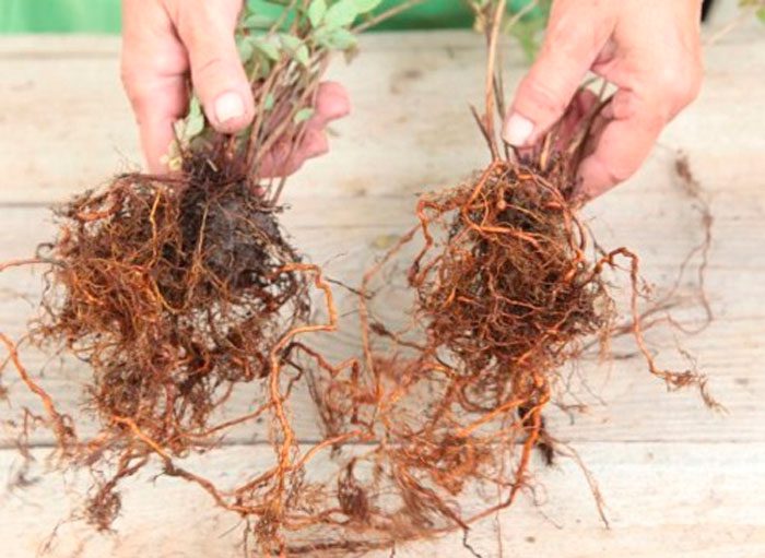 Найчастіше при пересадці чагарнику виробляють його поділ. У викопаного куща потрібно буде очистити кореневу систему від ґрунту, а потім він розрізається на декілька частин. При цьому слід врахувати, що у кожної з частин повинні бути розвинені коріння і потужні стебла. Висадка деленок проводиться таким же чином, що і первинна посадка саджанців. Посаджені рослини потребують рясному поливі.